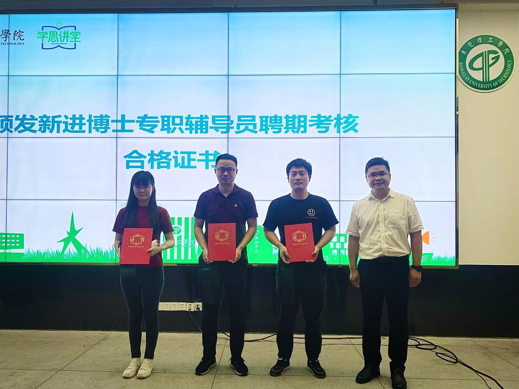 会上,黄金和为新进博士专职辅导员颁发聘期考核合格证书,他们分别是环建学院王鹏老师、微电子学院艾远飞老师、电智学院关朝旭老师、材料学院万学进老师。王鹏博士作为新进博士专职辅导员代表发言,他讲述了自己在辅导员岗位上经历的点点滴滴,指出“一年学工人、一生学工人,我们生逢盛世,承载着为党育人、为国育才的使命担当。”