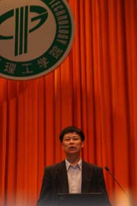 报告会上,王金发教授从教师职业的思考、大学创新的思考、研究性教学理念、实践与效果、社会影响与辐射作用五个方面畅谈了自己的看法和体会。他认为,影响高校本科教学质量的核心因素是教育思想和教育理念,教师要搞好教学与科研的关系,在给学生传授知识的同时要创造知识。教师应该具备师德、师能、师艺,对于“师德”二字,王教授把他诠释为“经师、人师”和“敬业、奉献”。他认为没有“德”就没有“师”,教师不仅要精通自身业务,还要教会学生如何做人;“师能”是教师立足之本,包括执教能力、思维能力和创新能力;“师艺”是指教学的艺术,包括语言艺术和形体艺术。王教授还认为,教学是一门科学、文化、艺术、情感。作为教师,在教学上要拥有“三心一情”,即爱心、责任心、用心和激情,要注重引导学生进行研究性学习,激发学生的学习兴趣、创新思维,使学生拥有较强的竞争力。